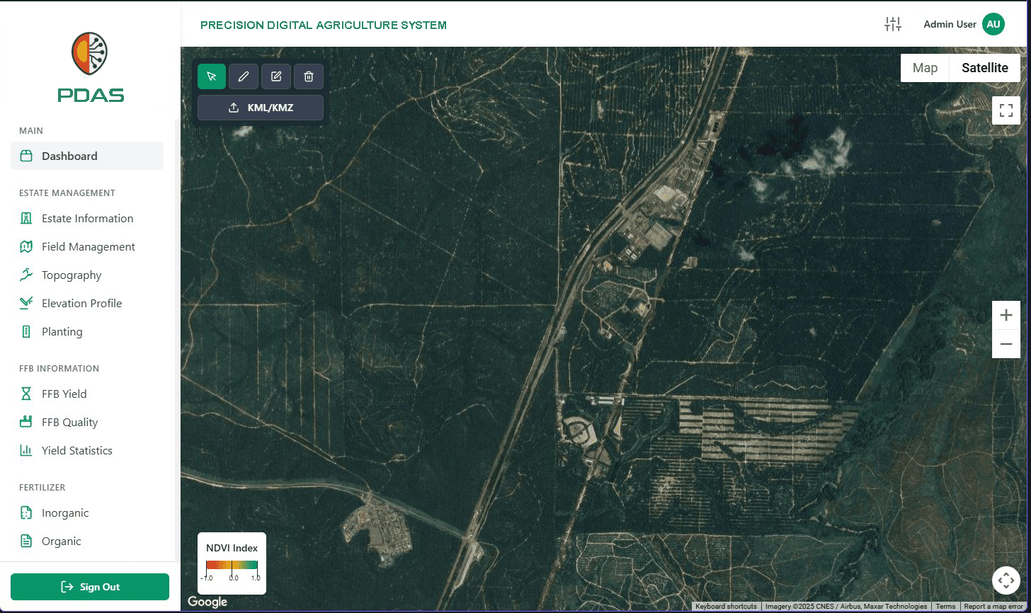 PDAS (Precision Digital Agriculture System) is a cloud-based digital agriculture platform that enables farmers and plantation operators to monitor, analyse, and manage their crops using satellite and drone imagery. The platform collects spatial data and processes it into practical information that supports daily operational and strategic decisions